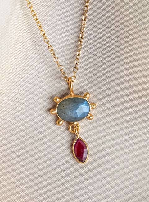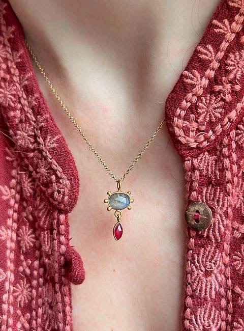 拉長石可以提升創造力和直覺,也能有著吸引靈魂伴侶的能量,和充滿生命力的紅寶石在一起,隱藏著對幸福的小小盼望🥰